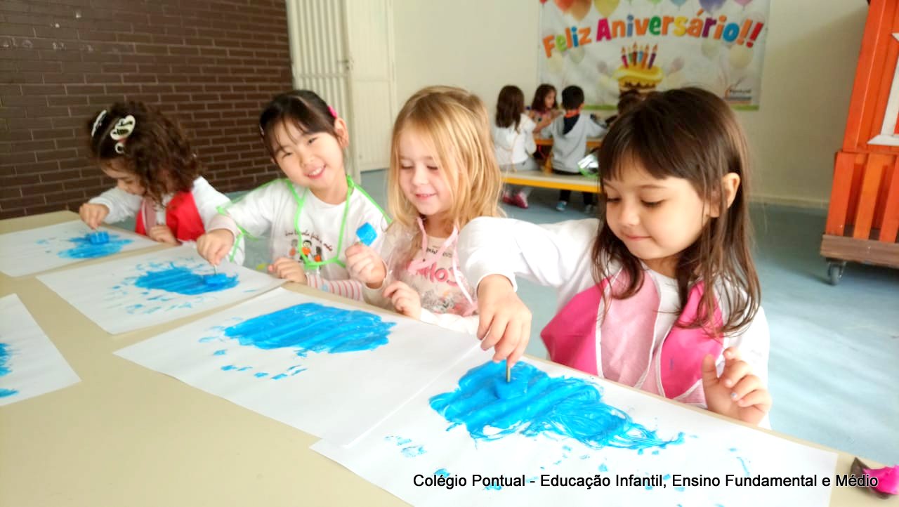 Essa aula foi super divertida, os pequenos fizeram uma pintura usando tinta de gelo!